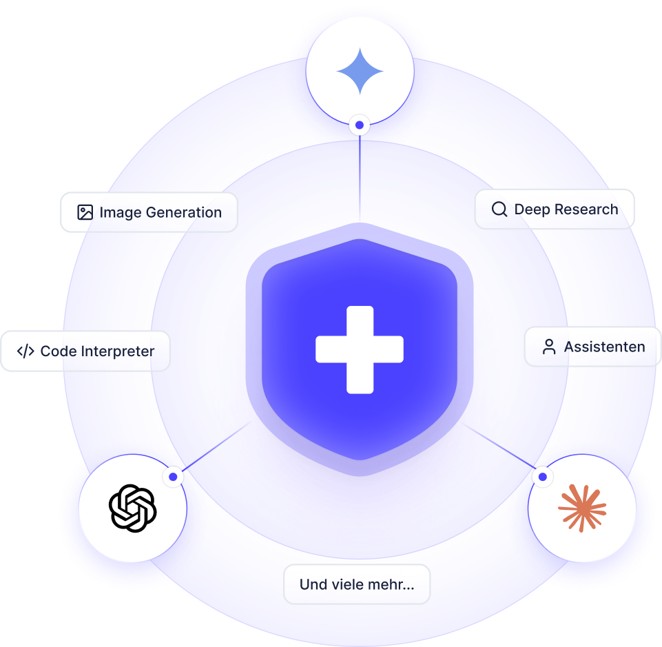 Bereits heute bietet Logicc eine Vielzahl der führenden KI-Modelle von KI-Lösungen wie ChatGPT, Gemini, Claude und Mistral. Unser Anspruch ist es, jetzt und in Zukunft immer die aktuellsten und besten KI-Modelle für Deine Nutzung bereitzustellen – gemeinsam an einem Ort. Und: Dank unserer Funktion Smart Select AI wählt Logicc automatisch immer das KI-Modell aus, das am besten zu Deiner Anfrage passt.